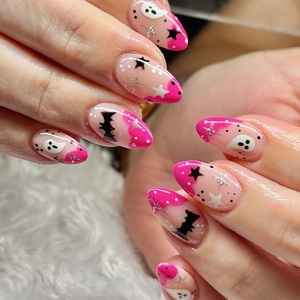 24Pcs Halloween Móng Tay Nghệ Thuật Màu Hồng Pháp Nail Mẹo Hạnh Nhân Báo Chí Trên Móng Tay Với Ma Bat Thiết Kế