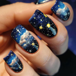 24 piezas Cosmic Galaxy Nail Art con estrellas brillantes y diseño de nebulosa Space Short Sqaure Press on Nails
