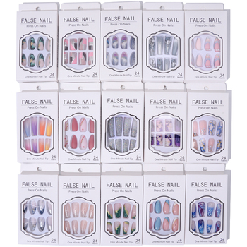 Vente en gros de faux ongles de luxe à pression longue 24 pièces en acrylique pour faux ongles artificiels Ensemble de faux ongles de marque privée